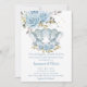 Baby Blue Floral Cute Elephants Twins Baby Shower Invitation