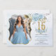 Baby Blue Floral Gold Sweet Sixteen Birthday Photo Invitation