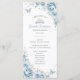 Baby blue, green, silver and white Quinceanera celebration program. Slim double sided order of events card. Features, script font, silver butterflies, watercolor roses and tiara. Perfect for an elegant princess style glam celebration. Personalize with your own details. Printed Zazzle invitations or instant download digital printable template.