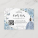 Baby Blue Floral Silver Quinceañera QR Code RSVP Enclosure Card