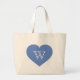 This tote bag features a shapely baby blue heart with a monogram initial. The baby blue heart design makes this an appropriate bag for toting baby boy toys and items.