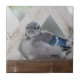 A ceramic tile featuring a photo of a baby Blue Jay.