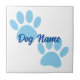 Baby Blue Puppy Paw Prints Editable Name Ceramic Tile