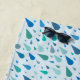 Personalized blue raindrops beach towel with custom monogram. Lovely water droplets in various shades of blue, teal and turquoise adorn baby blue background. Customize this lovely aqua pattern with your name or surname initial. Design features captivating water droplets in various sizes, each rendered in a spectrum of soothing shades of blue that mirrors the natural beauty of ocean and rivers.
