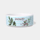 Modern design pet bowl featuring baby blue and white stripped pattern with winter red berries and greenery for your lovely companion. Click to 'Personalize the Template' to write your dog's name. Love Dogs, Always!