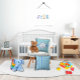 This cute throw pillow is perfect for baby or child’s bedroom and playroom. Cute teddy bear design on one side with a subtle geometric design on the back. In soothing shades of blue with a customizable name. It would make a great personal gift for a little one.