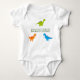 Cute baby bodysuit with colorful dinosaurs. There is also a place to add baby's name. Great for shower gift or for your own baby.