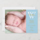 Baby Boy 4 Photos Blue Monogram Gold Script Birth Announcement