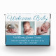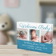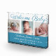 Welcome baby. A classic baby boy photo birth announcement in cerulean blue with beautiful cursive typography above your sweet newborn photograph collage. Customize the back with your favorite photo of your new infant for a lovely card.