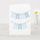 Welcome that precious baby boy with this adorable card. The front features a pastel blue banner and is accented with stars. On the inside is a short and sweet message that you can personalize and is perfect for welcoming a new baby boy. You can personalize this design by clicking on "Personalize this template" or if you wish to change the font, colors or arrange the design elements in a different way you can click on "Edit using Design Tool". This card is also available in a flat foil option.