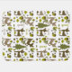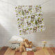 A baby blanket featuring a green and brown pattern of baby deer, evergreen trees, leaves, hoof prints, and acorns. Personalize with name!