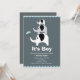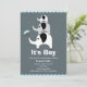 Welcome your baby boy with this adorable elephant-themed baby shower invitation, featuring a stack of three elephants and a playful rainy backdrop. With soft gray tones, teal highlights, and a sweet umbrella touch, it’s the perfect invite for a cozy and heartwarming celebration.