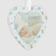 There's a cute pattern of brown, gray, and blue elephant images that make the heart shaped border on this Baby Boy ornament. At the center is your own photograph framed in thin matching blue. The back of the ornament has the same border, with a white interior that holds your custom text in two fields. This makes a wonderful keepsake or gift for new parents at Christmas, or any time during the year.