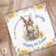 Cute personalised first Easter card. Edit name and text. It can be for any sweet baby boy, grandson, son, nephew, godson, stepson etc... Soft sweet watercolor art is melting heart. Check my blue card - variation for boy with bunny or other cute baby animals. This Easter is special. There is a cute baby in the family. ( 1st Easter card for Grandson, Daughter, Son, Niece, Nephew, Cousin, Goddaughter, Godson Easter) with watercolor art of baby bunny and his mum . Back of the card has a simple small egg basket, plenty of space for you to write your own message and wishes.
