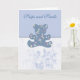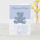 Pretty baby boy greeting card done in a blue colored back ground, with a faint flower design on the bottom of the card, and a floral blue colored teddy bear, in the middle. The sweet poem Snips and snails, is customizable, to what ever text you want.