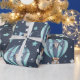 Cute hot air balloons with bear blue boy baby shower baby gift wrapping paper for a new baby gift, or baby shower.