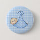 A pale blue checked background with a baby boy swaddled in a blue blanket on customizable baby buttons and magnets, perfect for baby showers or announcing the new baby boy arrival.
