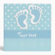 Little footprints on a blue patterned background.