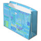 Beautiful composition with different colored fonts on a blue background, perfect paper gift bag for a newborn baby or baby shower