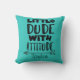 A fashionable pillow, this keepsake features a light blue background. "Little Dude with Attitude" is written in bold black font. Personalize baby's name underneath.