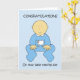 A cute baby boy in a blue outfit, and the words 'Congratulations on your baby naming day'.