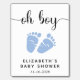 Cute party favor drink mix for your baby boy shower with "oh boy" in a pretty script with swashes and a pastel blue watercolor of baby feet. Underneath you can easily personalize with your name and shower date.
