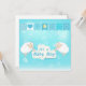 Baby boy shower card with Sheep on blue. Happy Birthday card paper art style
