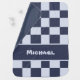 Do you know a little guy who has recently joined your circle of friends and family? This baby blanket features a square pattern quilt design in alternating dark and light blue colors and is personalized with the special little guy's name. The square pattern fills the front of this blanket along with a matching banner for the baby's name. The back of the blanket is solid blue leaving plenty of room for additional text or photos.