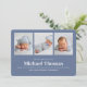 Welcome your little one in style with this baby boy announcement card featuring a clean and modern multi-photo collage design. With a simple yet bold navy blue and white color scheme, this card showcases minimalist typography and contemporary lines, perfect for sharing newborn details in a fresh, polished way. Ideal for displaying baby stats and favorite photos, this card brings a timeless, understated charm to birth announcements. Celebrate your new arrival with this effortlessly chic, baby photography-inspired design.