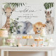 Step into a jungle adventure with PixeliaDesigns' "Wild One Safari Animal Baby Boy Shower Party Backdrop." With playful safari animals in soft watercolors and green tropical leaves, it's the perfect scene for your baby boy's shower. This backdrop bringing fun and adventure to the celebration. It's designed to make your baby shower unforgettable, adding a touch of wild joy and safari adventure to your special day.