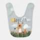 This whimsical and cute baby bib features an adorable woodland fox illustration in nature, with grass and a twilight sky. This lovely design also features a place for you to add your baby boys name. The perfect modern gender neutral forest themed, wildlife design for fox lovers!