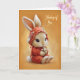 Baby Bunny in Cozy Red Bonnet Thinking of You Card