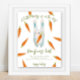 Gender neutral baby shower invitations. Featuring the saying 'A LITTLE BUNNY IS ON THE WAY!', an illustration of a watercolor bunny (rabbit) with carrot in paws, and many orange color carrots. Matching items available.