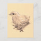 This drawing done in charcoal pencil and white conté crayon on a parchment yellow colored paper depicts a sweet, bright eyed young chick with fluffy downy feathers.