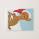 An adorable baby reindeer sits in the snow wearing a santa hat! Personalize it by clicking on the "Customize it!" Button.