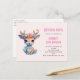 Birthday party postcard invitation with an adorable illustration. A sweet baby deer with big eyes, antlers and a little butterfly friend. Darling design.