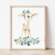 Baby Deer, Woodland Animals, Boho, Blue Flowers Poster