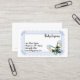 Business card for baby-related businesses, child care services, etc. features wooden diaper pins with rose accents and blue lacy frame with bows.Graphics©http://www.delightful-doodles.com/
