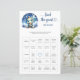 Whimsical design for Boy Baby Shower game features Watercolor hand painted illustration of a Cute watercolor dinosaur hugging teddy bear in the starry night. Hand drawn typography.