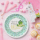 Cute baby Dinosaur hatching from an egg is the theme of this baby shower, new baby partyware item. Add names, date, event as desired to the template fields. Green and blue polkadots and modern trending typography complete this fun baby boy or girls shower look. For matching items view the attached collection of contact Designer LeahG.
