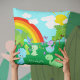 Baby Dinosaurs with Butterflies, Rainbow, and Sun Throw Pillow