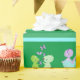 Wrap your gifts in adorable style with this cute baby dinosaur gift wrapping paper. Wrapping paper has a pattern of baby dinosaurs and cute purple butterflies (and one baby dinosaur is even hatching out of his shell!). Also in the pattern are palm trees, rainbows, and suns. Personalize the gift wrap with your son or daughter's first name.
