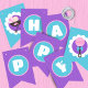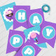 Baby Doll Happy Birthday Hanging Pennant Bunting Banner in Purple, Pink and Teal Blue. Swallowtail Pennants. Perfect party addition for any little baby doll lover!
