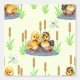Watercolor pair baby ducklings in a puddle with cattails and dragonflies on cream background.