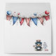 Add a festive touch to your holiday mail with this charming 5x7" patriotic envelope. On the back, a sweet children's book-style illustration of a baby eagle in a red, white, and blue top hat sits in the lower right corner. Open the flap to reveal a delightful Americana bunting illustration tucked just inside—like a mini celebration in every envelope.