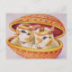"Flapper Chicks No. 7" features adorable twin baby Easter chicks peeking out from an opened orange Faberge egg. This egg is adorned with intricate jeweled details. The chicks are wearing their favorite orange Flapper headbands, complete with turquoise gems and feather accents. They are also wearing coordinating beaded necklaces. Make someone's Easter happy with this charming design!