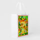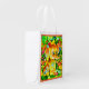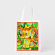 I own a lot of reusable grocery bags, but this one holds its box shape and simply stands up on its own even if there is nothing in it. Its stiffer than your regular reusable bag too, and the material is water resistant. I poured water on the exterior and it didn't penetrate inside to the other side. I'm buying a couple more. Wish I knew how durable these bags were or I would have purchased a few more with my initial order. I also like how it folds and buttons up when not in use, making it easy to put into a handbag or luggage. I haven't used this bag yet, as I purchased it for travel use, like when you're at the airport and need to small sturdy bag to place any airport purchases in, like food, souvenirs etc. I can tell you when you first see this bag, it looks very cheap, but after closer inspection of the material and the seams its a very sturdy reusable bag. I tested it out by putting some really heavy objects inside and I could not observe any stress to the bag at all. Another thing I like about it, is the fact the medium size that this is makes it easy to just carry it in your hand without the bottom of the bag scraping the ground, like most other bags do when you're short. That alone, deserves 5 stars. I just wish there were more colors to choose from! The PDX Airport Carpet printing looks just like the photo, and using this bag during travel might be a conversation piece when/if a native from Oregon happens to see it.
