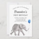 Baby Elephant Birthday Party Invitation Blue Gray