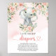 The design of a cute watercolor baby elephant with blush pink flowers and eucalyptus greenery combined with modern script is a charming touch for a girl baby shower. The Late Night Diapers game sign adds a fun element to the event and ties in beautifully with the overall theme. The combination of soft colors and playful imagery creates a whimsical and elegant atmosphere, perfect for celebrating the arrival of a new baby girl.