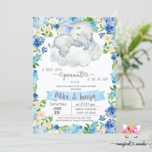You can apply the design of your Baby Elephant Cloud Boy Baby Shower Invitation Invitation to other items for a party such as stickers. The same goes for all of our digital products - any digital product/ design you purchase can also be used on any Zazzle product.